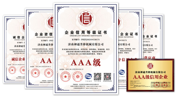 濟(jì)南神通升降機(jī)械有限公司是升降平臺(tái)專(zhuān)業(yè)生產(chǎn)企業(yè),是重合同守信用單位,位于山東省濟(jì)南市濟(jì)陽(yáng)縣濟(jì)北開(kāi)發(fā)區(qū),公司的主導(dǎo)產(chǎn)品有SJY系列移動(dòng)剪叉式升降平臺(tái)、SJG系列固定剪叉式升降機(jī)、SJD系列導(dǎo)軌式升降貨梯、SJZ折臂式升降機(jī)、車(chē)載式升降機(jī)、SJL系列鋁合金升降機(jī)、SJT套缸式液壓升降機(jī)、SJWT系列升降舞臺(tái)、SJQ系列移動(dòng)式登車(chē)橋和固定式登車(chē)橋等九大系列80 多個(gè)品種。
